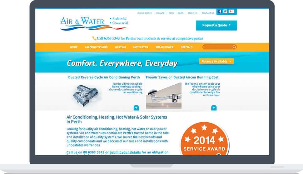 We are delighted to reveal Air & Water’s newly-designed and built website! Air & Water is a family-owned business specialising in the design and installation of air conditioning, home heating, hot water and solar power systems in Perth.
